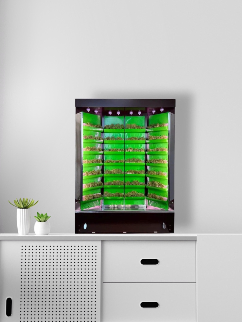 Вертикальная ферма для выращивания микрозелени в офисе — это не только способ улучшить здоровье сотрудников, но и возможность продемонстрировать приверженность компании к ЗОЖ и заботе о благополучии персонала.